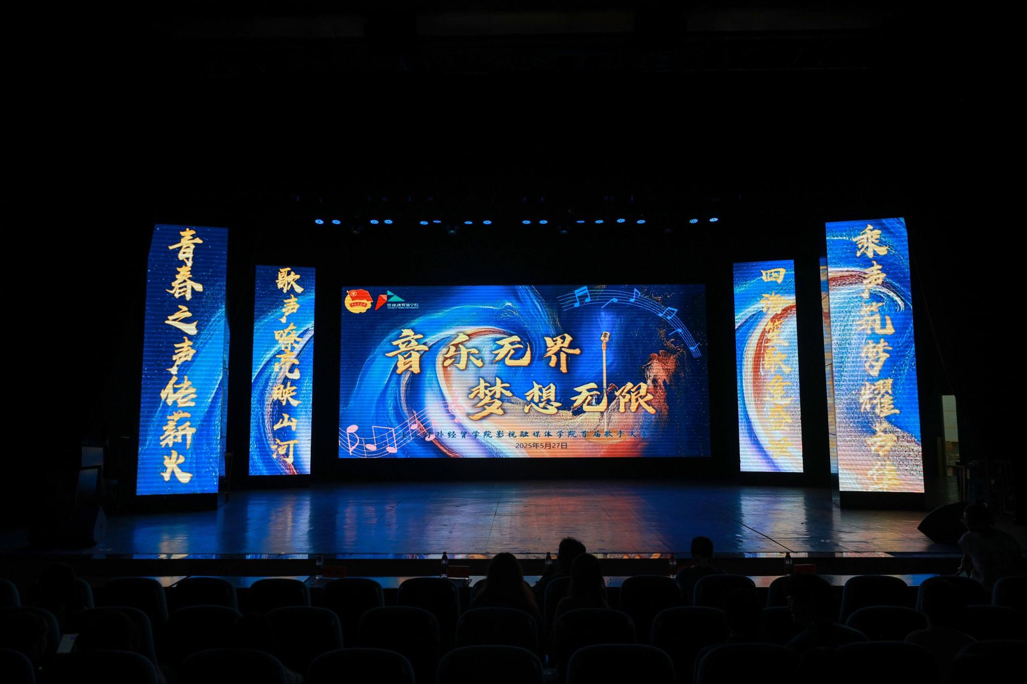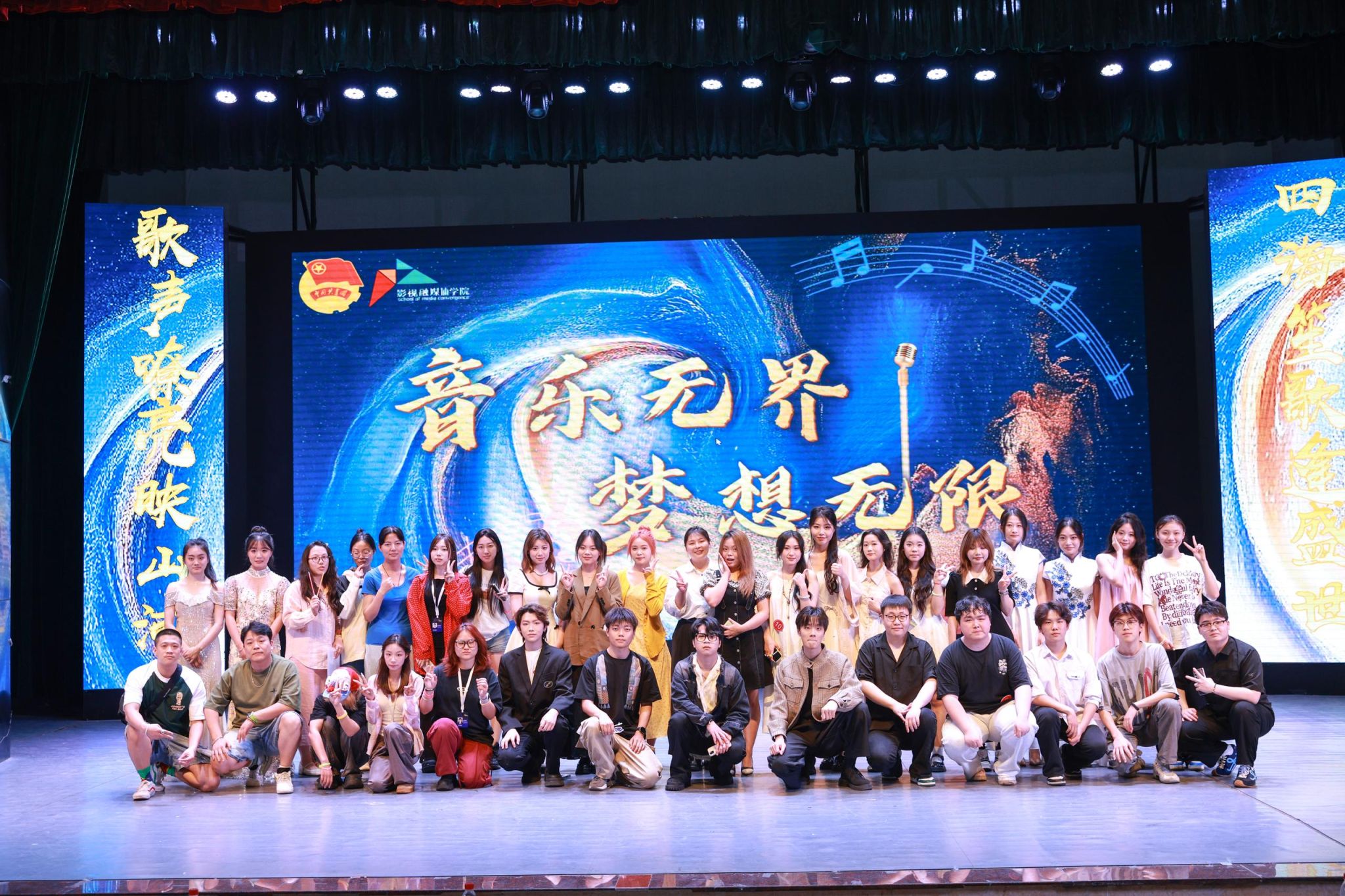 为丰富校园文化生活,展现学生青春风采,激发学生对音乐的热爱,影视融媒体学院以“培育全面发展的高素质人才” 为宗旨,学院于5月27日在学校小剧场成功举办了“音乐无界・梦想无限”首届歌手大赛。