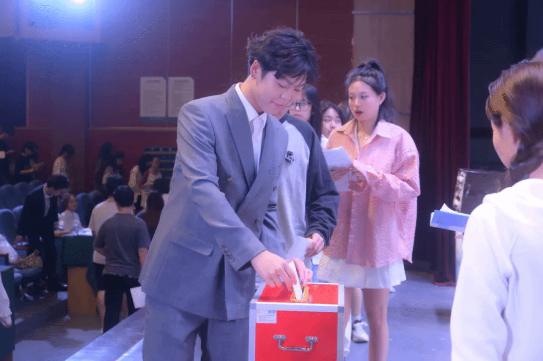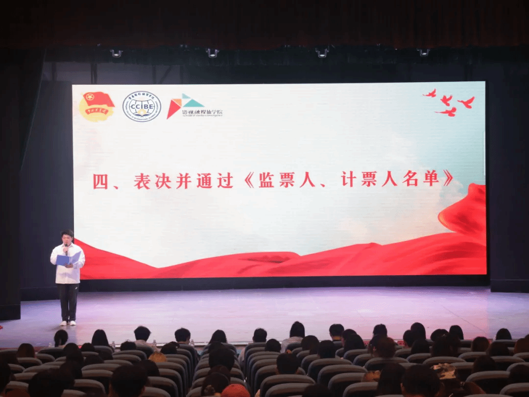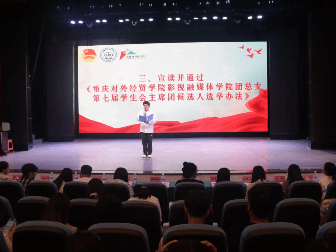 大会以庄严的中国共产主义青年团团歌合唱启幕,激昂旋律中,师生们的责任意识与参与热情被充分调动。紧接着,选举工作循着规范路径层层推进:校团委干事樊林鑫宣读选举批复,从制度层面夯实选举的合法性;全体与会人员共同审议并鼓掌通过《重庆对外经贸学院影视融媒体学院团总支第七届学生会主席团候选人选举办法》,为选举流程筑牢规则基石;经民主表决,《监票人、计票人、计分人名单》正式生效,以全程透明的监督机制保障选举公平性。