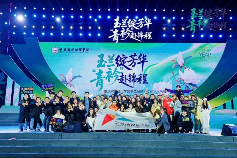 秋夜星火,玉兰含芳。11月18日19:00,重庆对外经贸学院“玉兰绽芳华,‘青衿’赴锦程”第二届校园文化艺术节暨迎新晚会在合川B校区田径场盛大开幕。这是一场属于全体新生的青春献礼,也是一次艺术与梦想交织的视听盛宴。学院的学子们不仅全程参与、见证精彩,更以一台凝聚多个专业心血的情景剧《山河信》,在全校舞台上发出了属于我们的响亮声音。