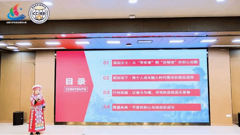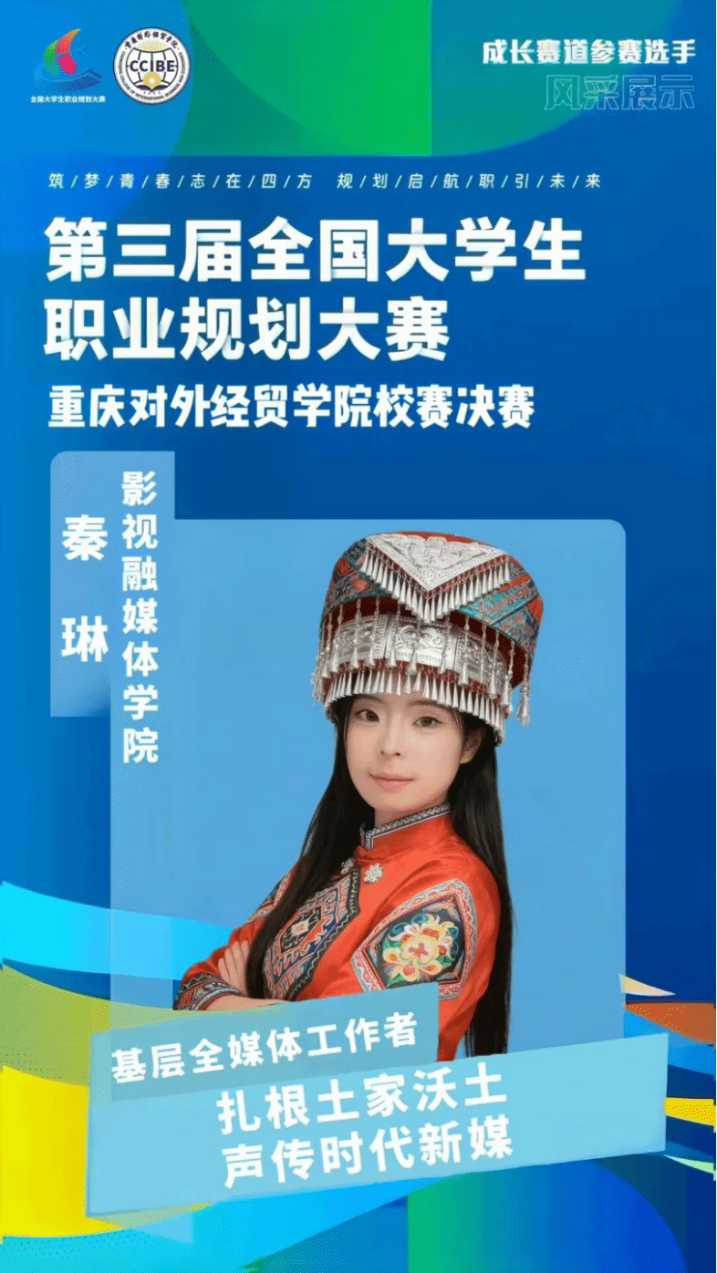 回顾这场“闯关之旅”,秦琳同学的每一步都走得坚定而扎实。从院赛阶段对职业方向的初步探索,到校赛复赛时对规划方案的反复打磨,再到决赛场上从容自信的答辩展示,她始终以严谨认真的态度对待每一个环节。为了让职业规划更贴合自身发展、更具实操性,她查阅大量行业资料,结合自身专业所长和实践经历,一遍遍优化规划细节;面对赛事中的难点问题,她主动与指导教师沟通,在一次次思维碰撞中完善方案。