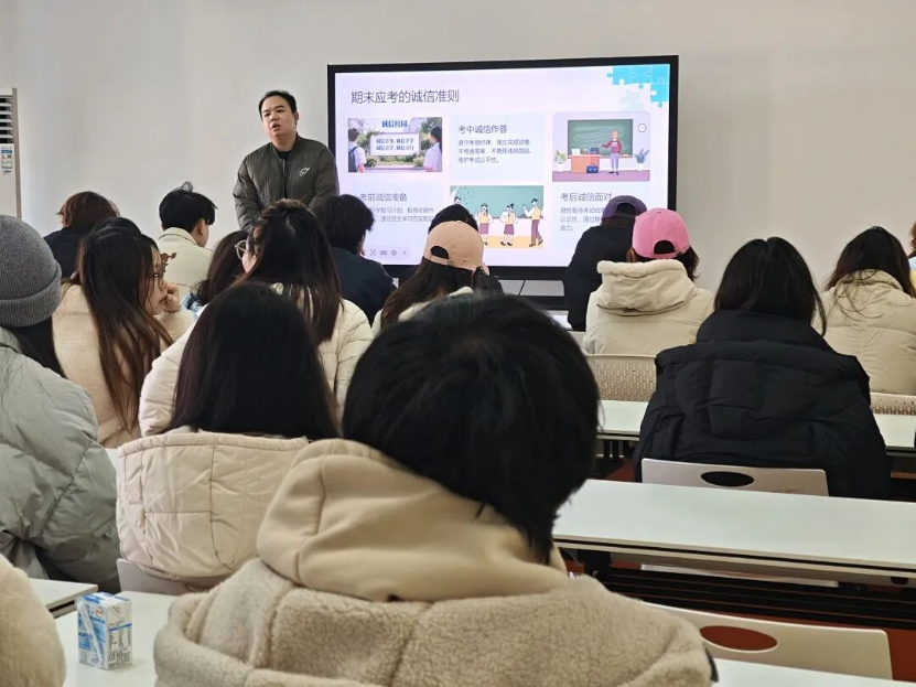 学院全体辅导员组织召开诚信应考主题班会,集中学习考试纪律和学生手册相关规定,号召全员树立诚信意识;通过典型案例进行深度解读,通过“以案说法、以案明纪”的方式,明确“零容忍”态度;通过签署《诚信考试承诺书》,进一步明确了考试纪律和要求。同时,学院利用微信公众号宣传诚信考试的重要意义,树立“人人讲诚信、事事守规矩”的良好学习风气。与此同时,辅导员通过深入学生宿舍走访,掌握学生备考状态与思想动态,对学业困难等特殊群体给予重点关注和指导,有效做好考前引导与帮扶工作。