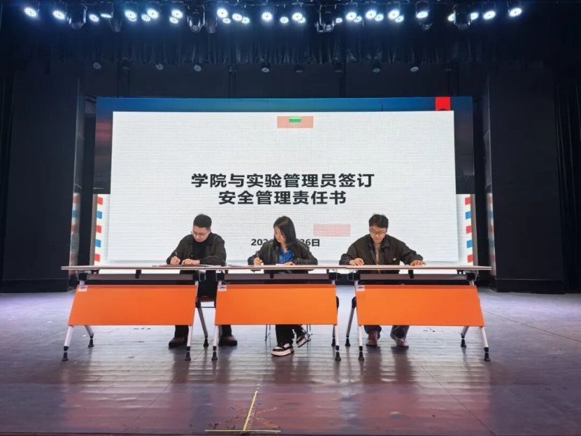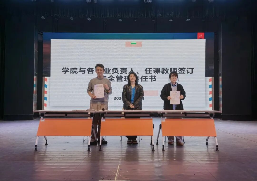 安全工作会上,常务副院长王杨丽作为学院负责人与各专业负责人、实验管理员、内外聘教师等签订安全管理承诺书。