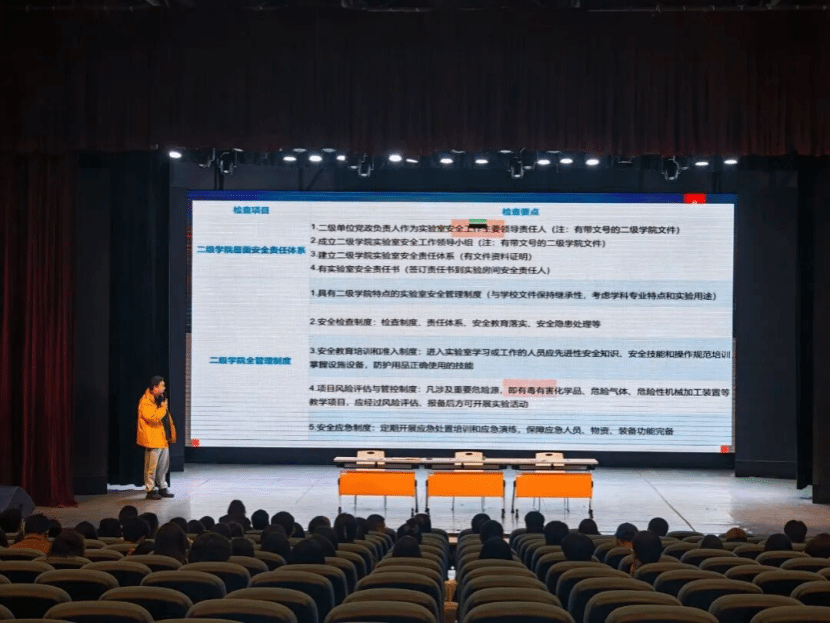 实验室规范性、外部环境安全性检查,重点排查电线、消防通道、灭火器等关键点位;二是完善实验室安全管理制度,健全领导小组、规章制度、准入机制,层层签订安全管理责任书;三是强化安全教育培训与应急演练,建立健全应急预案,开展应急知识学习与实操培训;四是做好制度牌上墙、运行记录本完善等基础工作,实现安全管理标准化、规范化。
