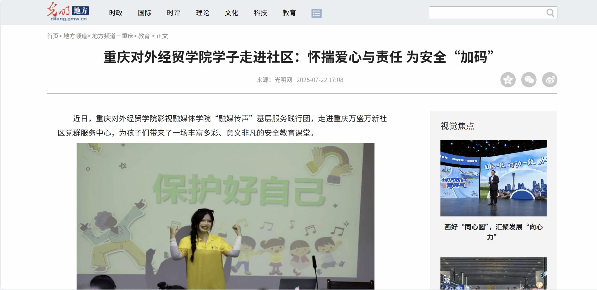 上一条:万盛共青团报道:学院三下乡 | 青春力量多维绽放,万盛大地遍开实践之花 下一条:华龙网报道:寓教于乐!重庆对外经贸学院学子走进社区开展少儿成长课堂
