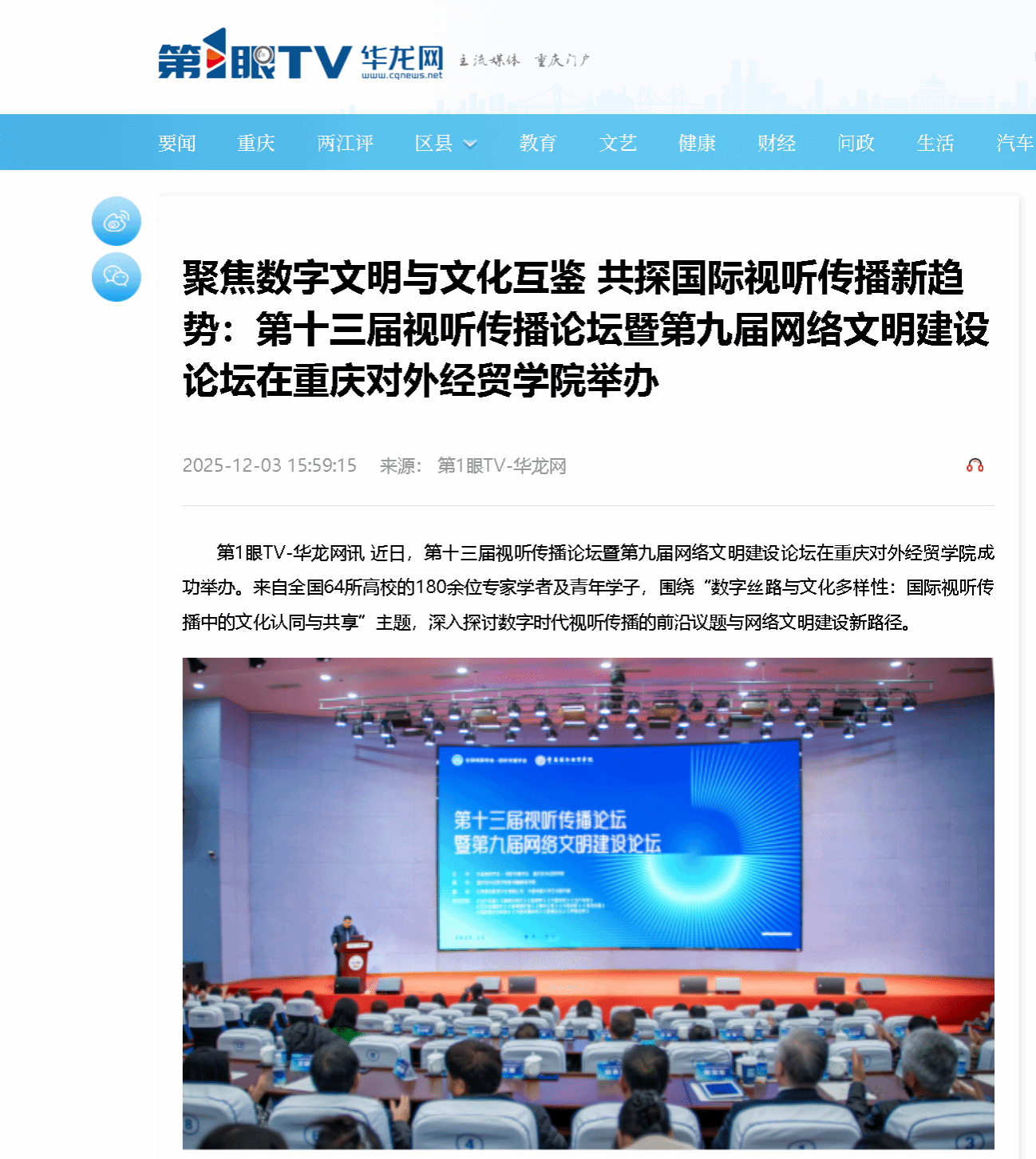 上一条:新重庆网报道:第十三届视听传播论坛暨第九届网络文明建设论坛在渝举办 下一条:人民网报道:聚焦数字丝路与文化多样性 共探国际视听传播新路径