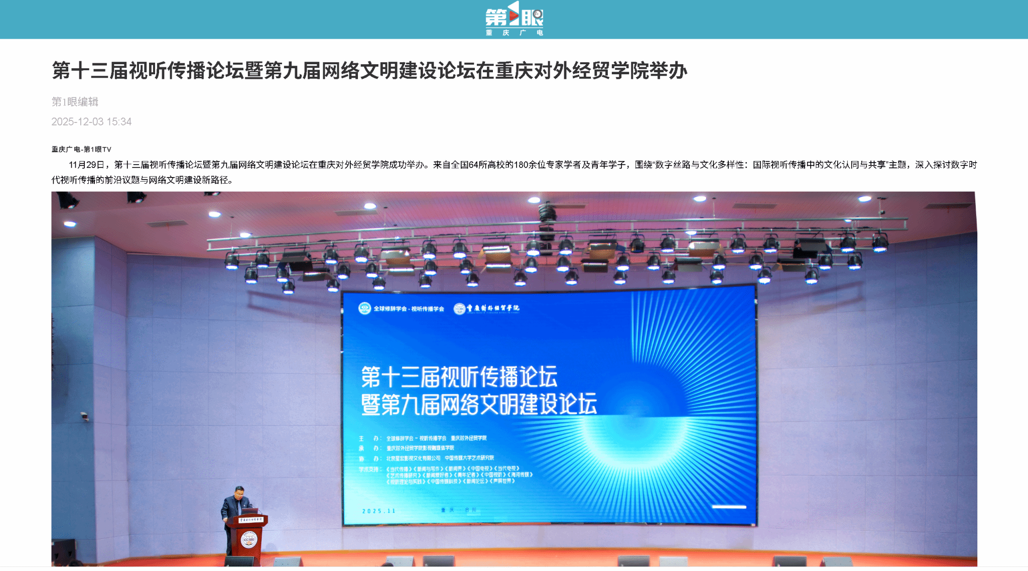 上一条:地方频道报道:聚焦数字丝路与文化多样性 全国百余专家学者渝州研讨视听传播前沿议题 下一条:新重庆网报道:第十三届视听传播论坛暨第九届网络文明建设论坛在渝举办