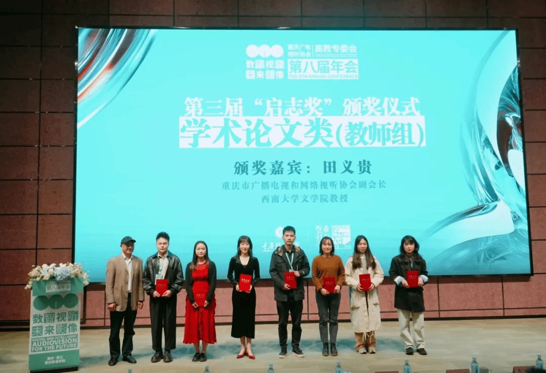 上午的开幕式现场揭晓第三届“启志奖”各类别最终获奖名单,并举行颁奖仪式。在学术论文类教师组“启志耕耘奖”评选中,学院教师陈沐、赵辰获二等奖,陈依彤、陈浪、潘露、付麟雅获三等奖,周洋、龙雯、谢霞、陈思弈、冷天泽、杨雪梅获优秀奖;在微短剧剧本、短视频评选中,来自广编、网新专业的学生团队共获9项荣誉,学院教师冉冉、陈沐获优秀指导教师奖;学院获优秀组织奖。