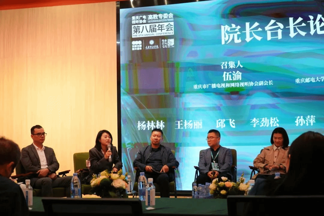 下午进行院长台长论坛。学院常务副院长王杨丽与来自綦江区、渝北区、巴南区融媒体中心主任,以及长江师范学院、重庆文理学院等传媒艺术类二级学院院长进行现场交流对话,共同探讨数智时代视听产业变革与人才培养经验。
