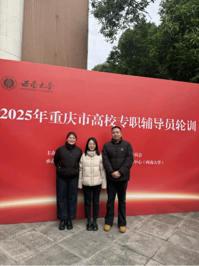 为进一步提升辅导员队伍的理论素养、专业能力和工作水平,11月18日至20日,学院辅导员王成昊、祝玉兰、夏思涵一行三人,赴西南大学参加了由重庆市教育委员会举办的高校专职辅导员轮训。