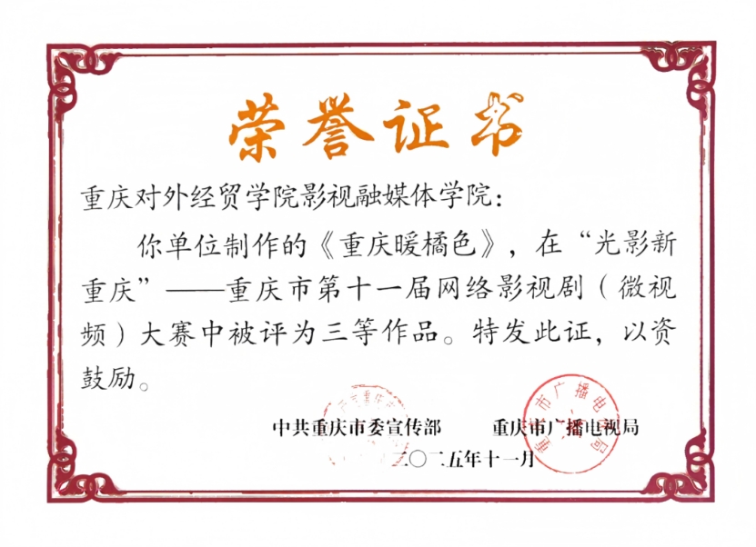 此次获奖,是学院坚持“以赛促教、以赛促学”教学理念的显著成效,更是深耕影视融媒体专业人才培养、深化教学与实践融合的有力印证。未来,学院将继续以各类专业赛事为契机,持续深化教学改革,推动本土文化与影视创作深度融合,用心讲好重庆故事、展现新重庆风貌,不断提升人才培养质量,为影视行业与地方文化传播培育更多优秀专业人才。