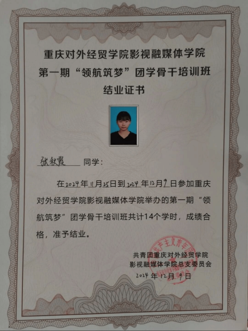 正如辅导员陈映衡老师评价:“该生理想信念坚定,学习刻苦钻研,工作认真负责,社会实践积极主动,充分展现了新时代青年的责任与担当。” 如今,张秋霞仍以“越努力越幸运”为信条,在广播电视编导的道路上稳步前行。未来,她将继续带着这份初心与韧劲,在专业领域深耕细作,在服务他人中传递温暖。