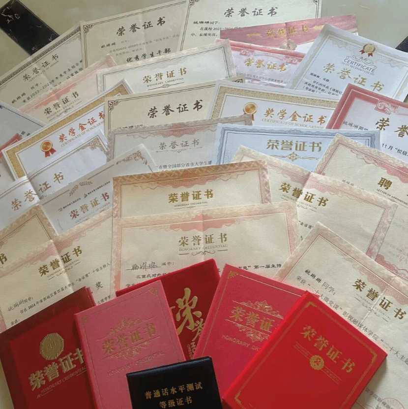2025年9月荣获第四届全国大学生普通话大赛优秀奖等。