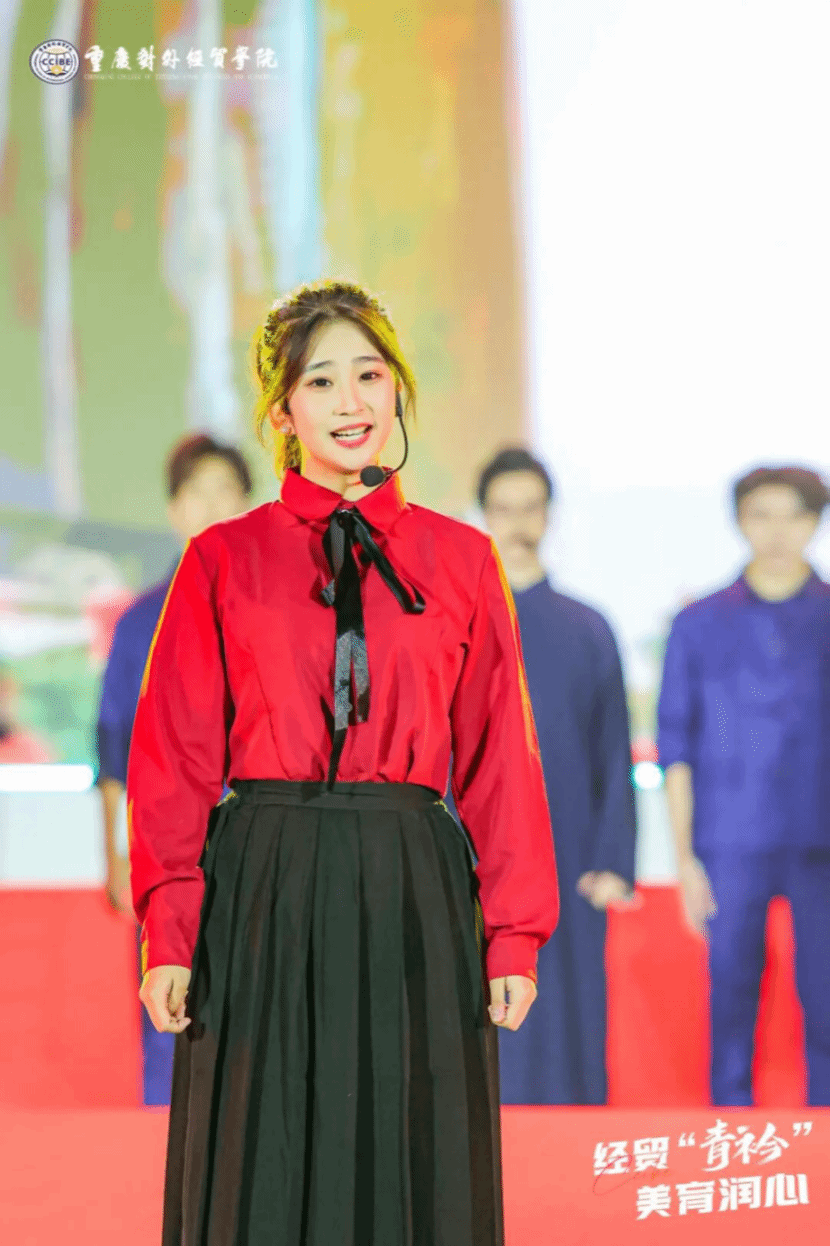 在校园文化活动中,总能看到她活跃的身影。她连续两年参与学校毕业典礼的演出工作,从幕后策划到台前主持,每一个环节都认真对待。在2024年评估动员大会上,她作为学生代表发言,表达了对学校发展的信心与期待。此外,她还主持了校内外各类活动20余场,从学院迎新晚会到校企合作论坛,每一次主持都是对专业能力的锤炼。