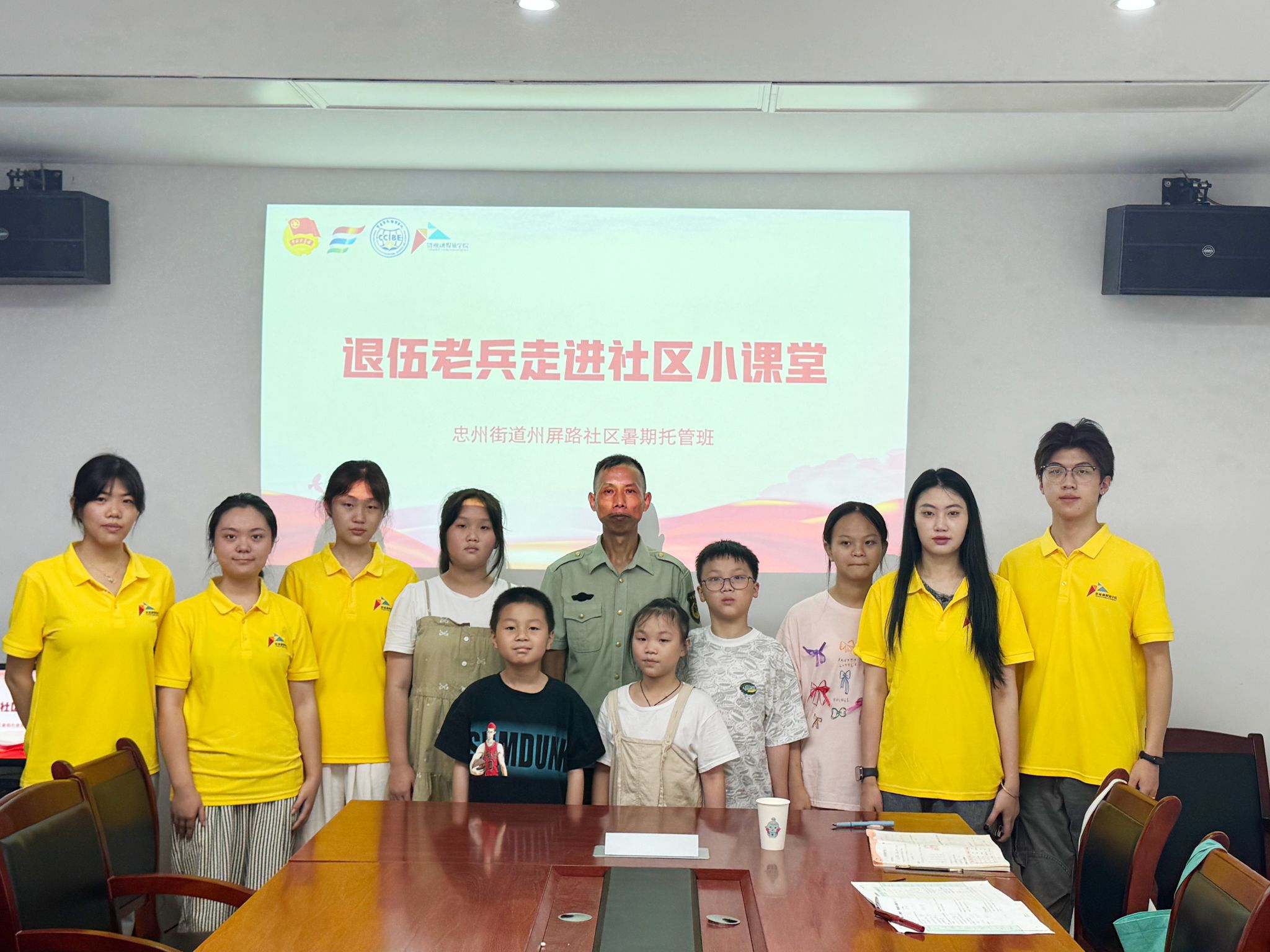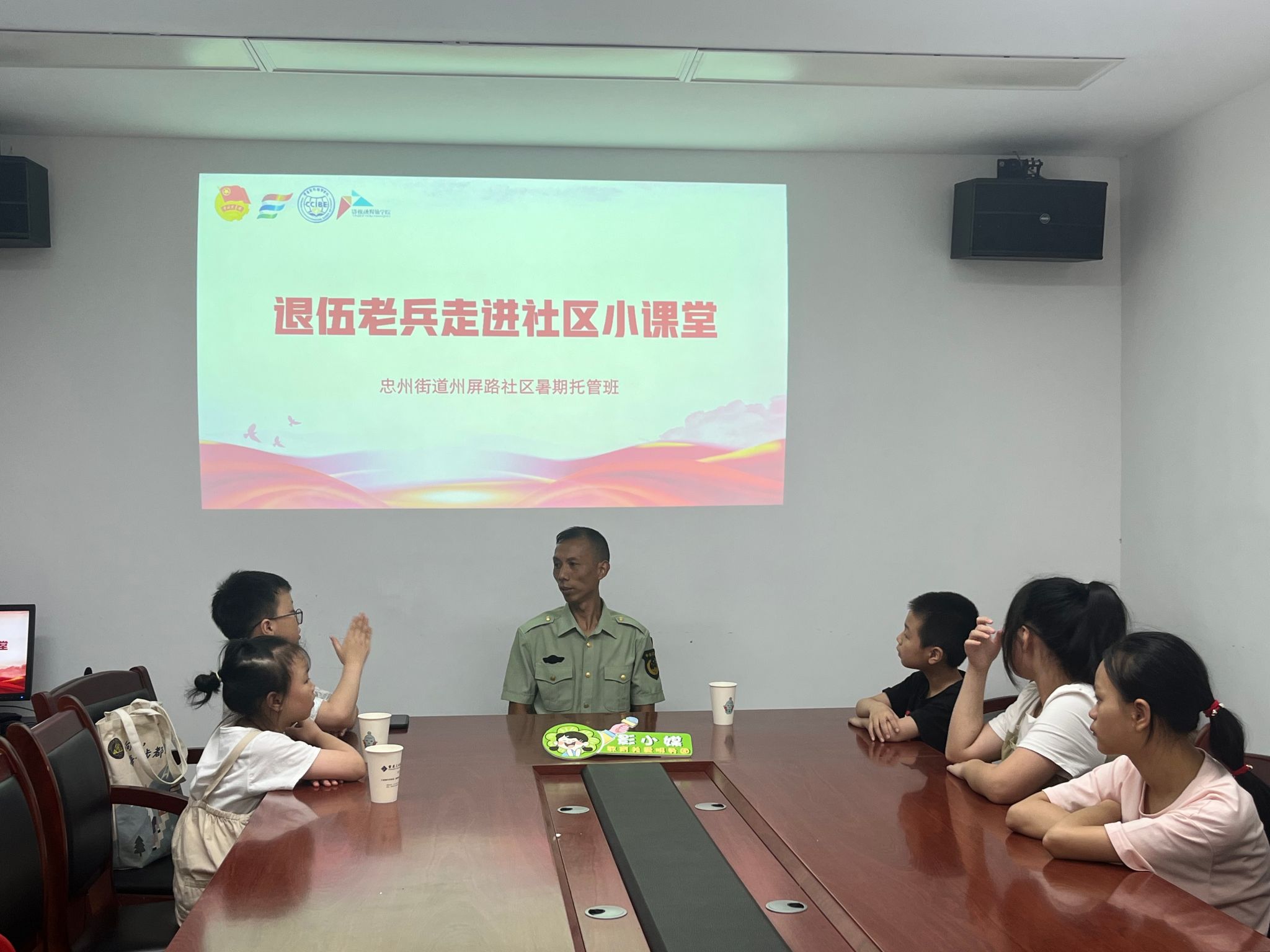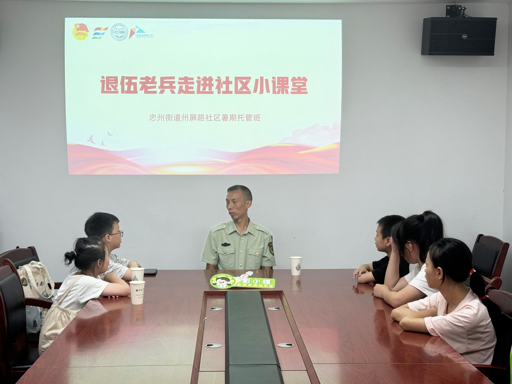 7月12日,“影小媒”教育服务团在忠州街道州屏路社区党群服务中心举办了一场别具意义的“退伍军人走进社区小课堂”活动。本次活动以“传承红色基因,培育时代新人”为主题,退伍老兵与孩子们分享军旅故事,传递红色精神,在学业帮扶中融入爱国教育,为青少年成长注入红色力量。