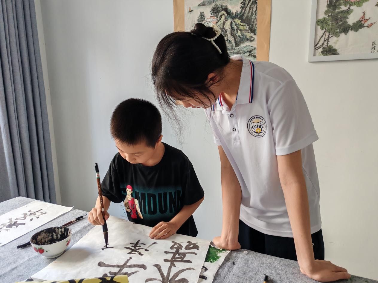 活动首先进行了书法和钢琴教学。服务团成员指导小朋友们学习正确的书法握笔姿势和基本笔画书写方法,带领他们在宣纸上练习。在钢琴教学环节,成员们教授了简单的音符和旋律,帮助孩子们认识琴键并进行初步弹奏尝试。