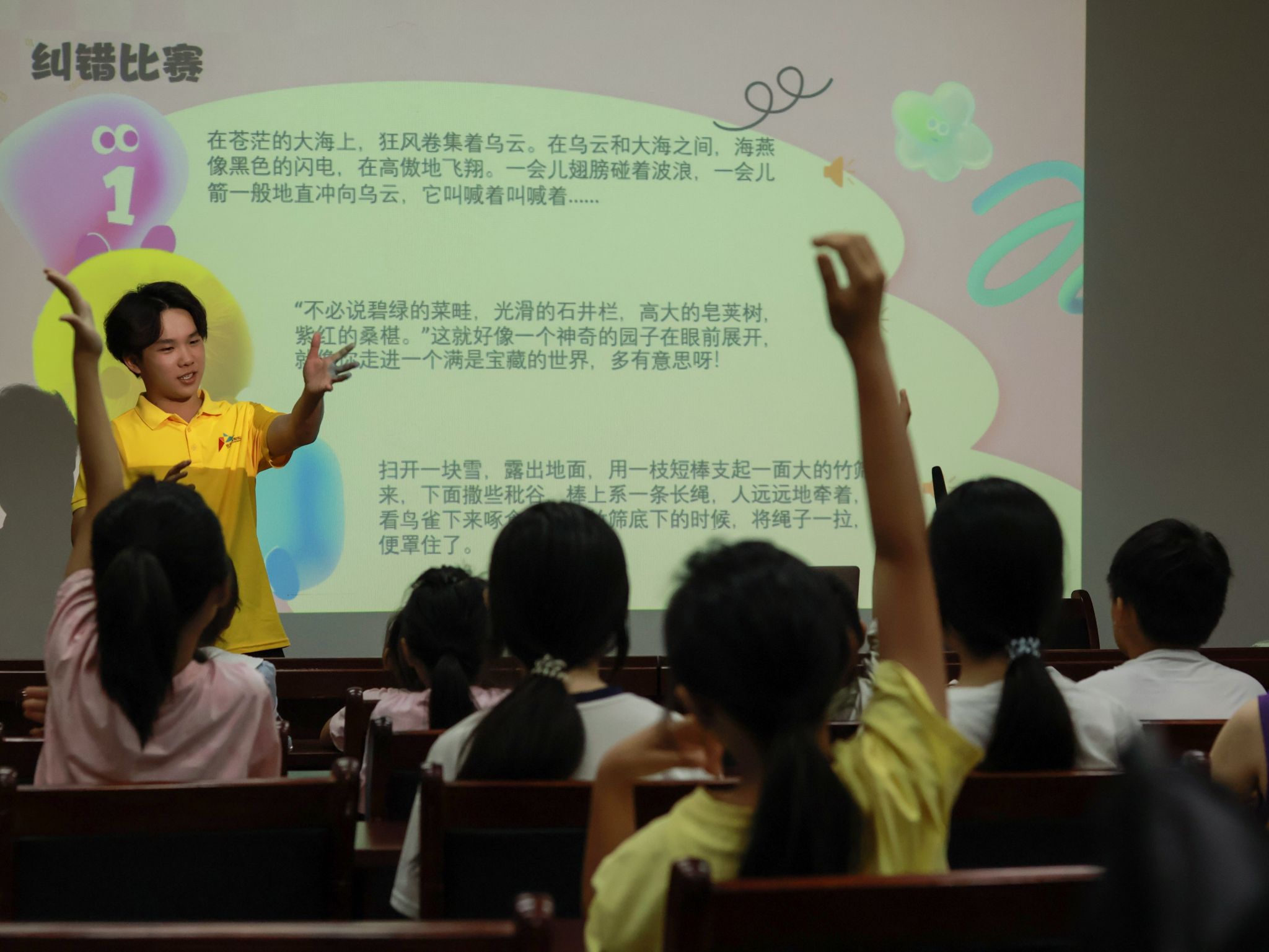 践行团成员孙彬带来的普通话推广小课堂点燃了现场氛围。课堂上,孙彬化身“语言小导师”,将晦涩的发音规则转化为朗朗上口的趣味绕口令。活动旨在通过生动活泼的形式,激发孩子们学习普通话的兴趣,提升语言表达能力,让规范的语言如春风细雨般滋润童心。