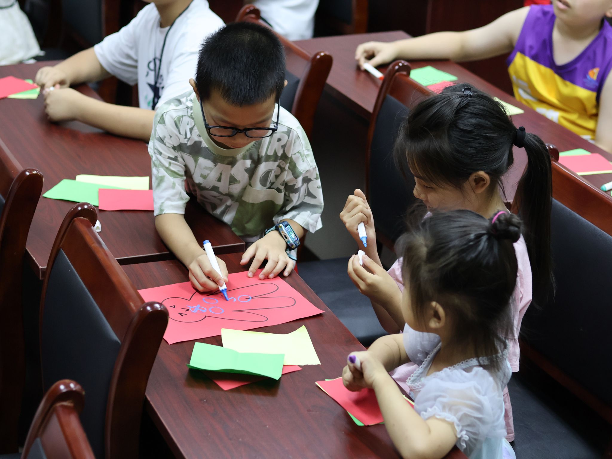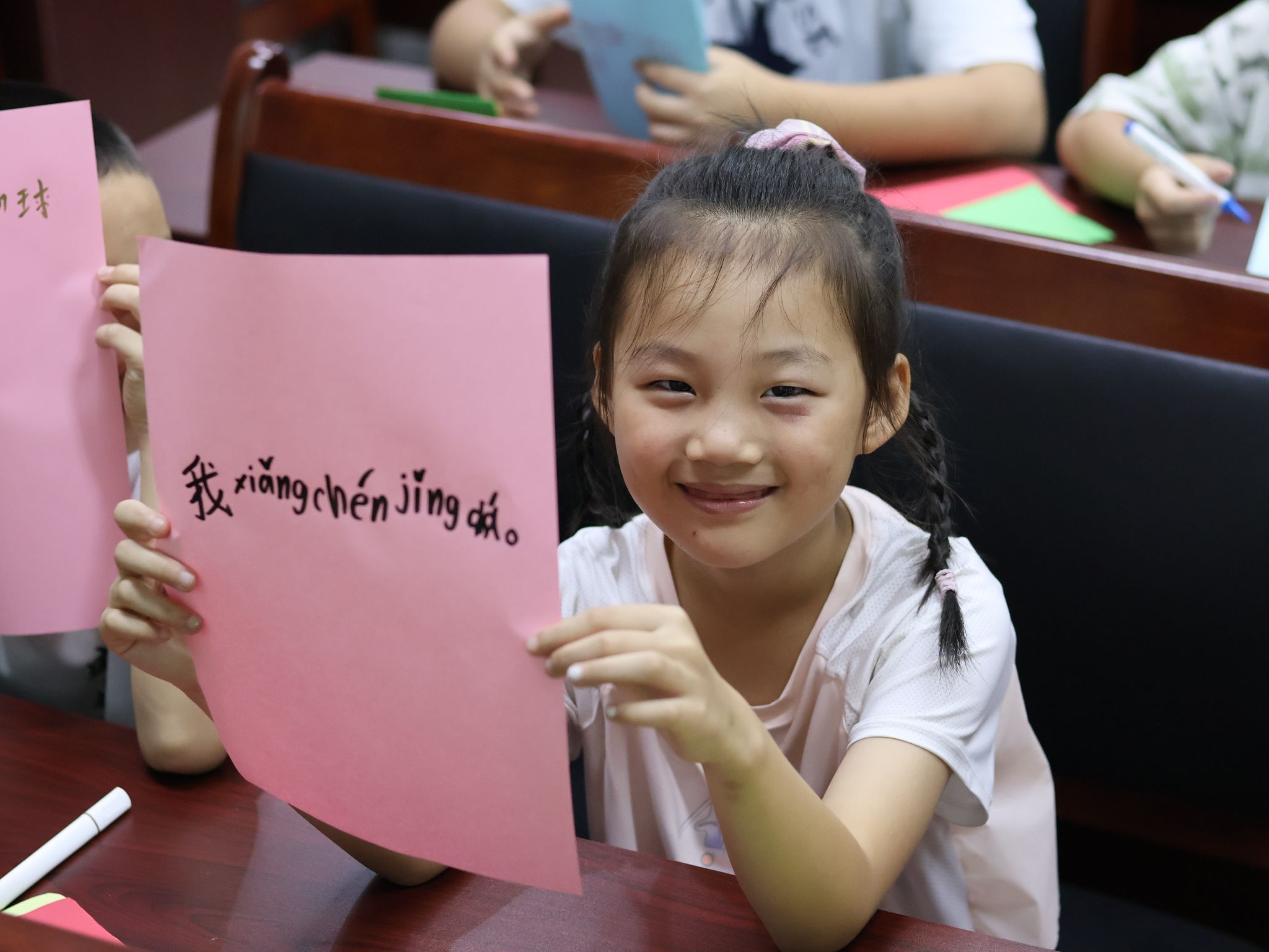 所有课堂结束后,团队成员们带领孩子们一起写下心愿。孩子们的小手紧紧握住笔,认真地在卡片上写下自己的梦想。有的小朋友说:“我想当警察,保护大家的安全。”有的小朋友说:“我想考双百分,让爸爸妈妈为我骄傲。”每一个心愿都充满了纯真与希望,每一个梦想都闪耀着未来的光芒。