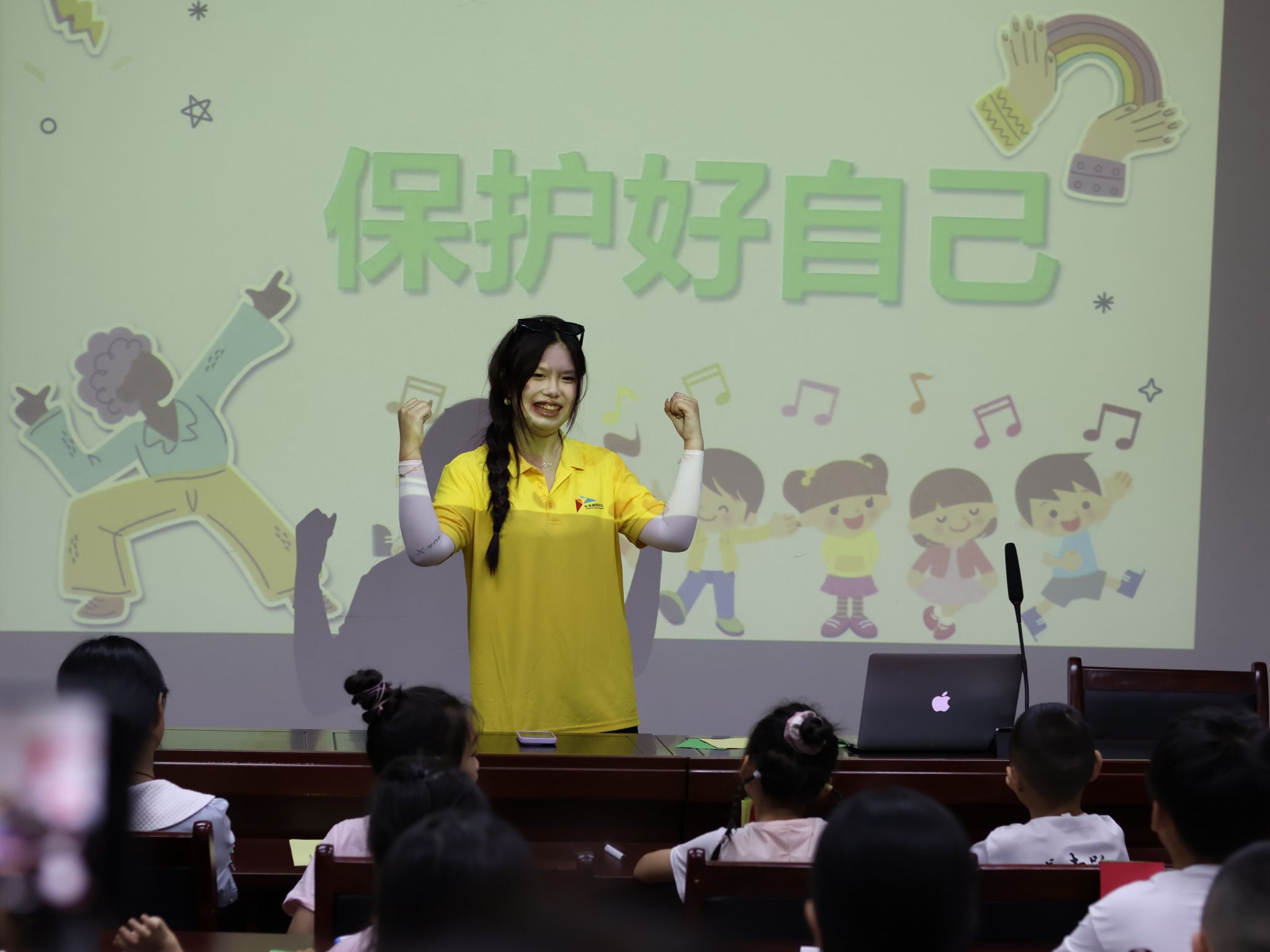 防性侵教育课堂为本次活动的一大亮点。团队成员们深知,保护自己是孩子们成长过程中不可或缺的一课。为了更好地让孩子们理解这一重要知识,团队成员王乙童精心设计了手势舞互动环节。在欢快的互动中,孩子们跟着团队成员一起舞动双手,通过简单易记的手势动作,学习如何识别危险信号,勇敢地说出“不”字。这种寓教于乐的方式,不仅让孩子们在轻松愉快的氛围中掌握了自我保护的知识,还增强了他们的自我保护意识和能力。孩子们的脸上洋溢着自信的笑容,他们纷纷表示,以后遇到类似的情况,一定会勇敢地保护自己。