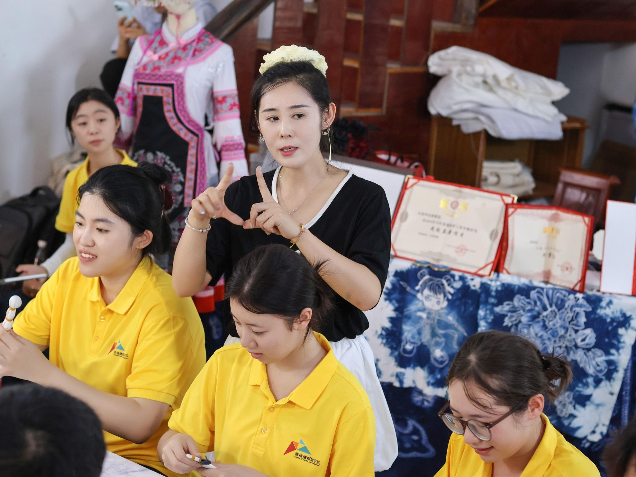 苗族蜡染传承人冉媛老师为践行团成员讲解现场