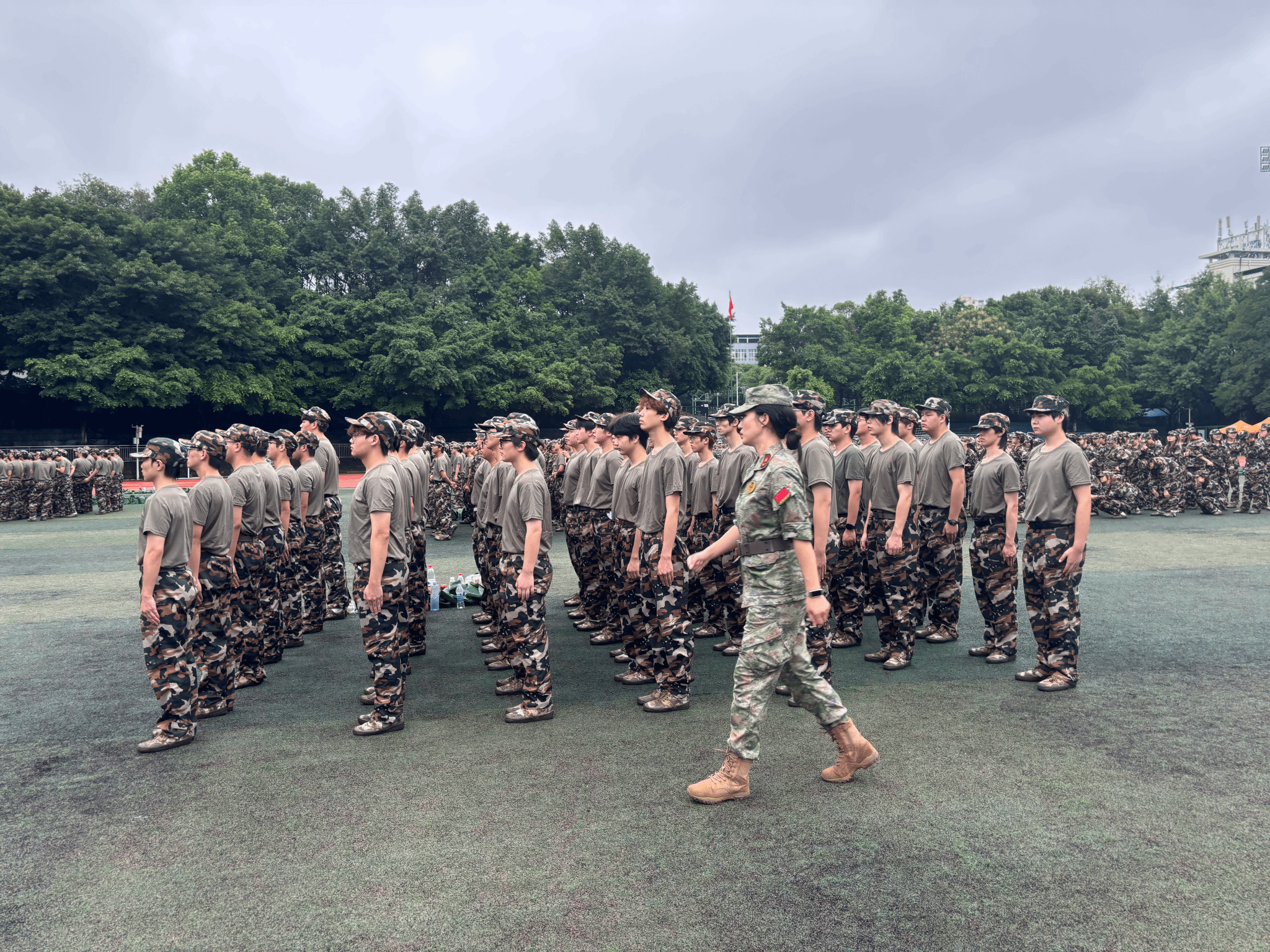 对于学院的新生而言,这场军训不仅是大学的 “第一课”,更是一次用“镜头外的坚守”诠释专业精神的实践。当“稍息”“立正”的指令响彻操场,清脆的呼号如同影片中激昂的配乐,穿透清晨的薄雾,回荡在每一个角落。新生们迈着铿锵的步伐,整齐的队列宛如精心构图的镜头画面,每一次摆臂、每一步落脚都精准有力,挺拔的身姿尽显青年朝气。