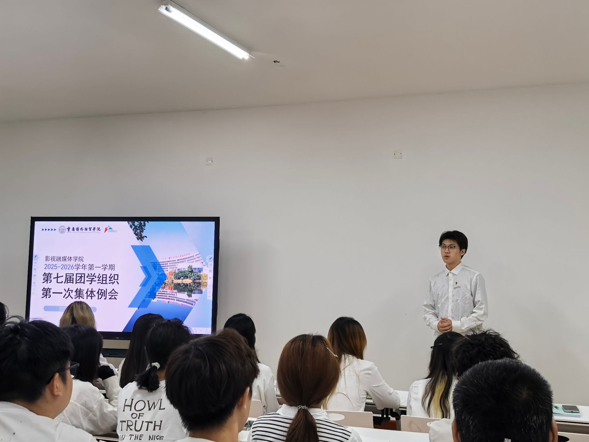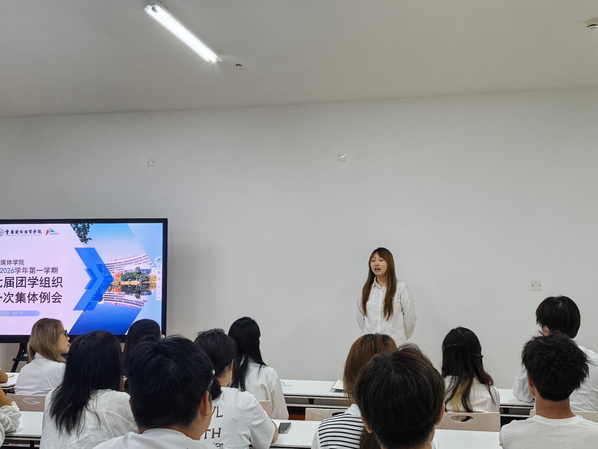 例会伊始,由王成昊老师发言。他对新加入的成员表示欢迎,介绍了团学组织的性质、宗旨及核心职责,强调组织以“服务同学、联结师生、丰富校园文化”为核心目标,鼓励全体成员秉持责任意识与服务精神,积极投身各项工作。