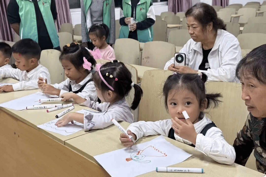 志愿者团队以高度的责任感和耐心,针对每个孩子的不同特点和表达困难,进行个性化的引导和鼓励,消除了小朋友们在表达过程中的心理顾虑,为他们营造了一个安全、包容、积极的表达环境。在这种良好的氛围下,孩子们的参与热情被充分激发,纷纷踊跃发言,积极分享自己的绘画作品和想法,活动现场气氛热烈,取得了显著的教学效果。