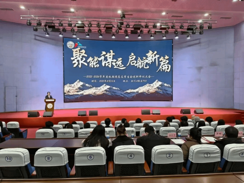 为总结学生会工作成效,明晰后续工作方向,加强学生组织队伍建设,重庆对外经贸学院影视融媒体学院于12月16日在9101召开“聚能谋远,启航新篇”2025-2026学年度秋期团总支学生会述职评议大会。出席本次述职大会的有学院团总支书记兼学生工作办公室主任王成昊老师、团总支干事班靖蕾老师以及辅导员王效君老师、陈映衡老师、徐钰洁老师。